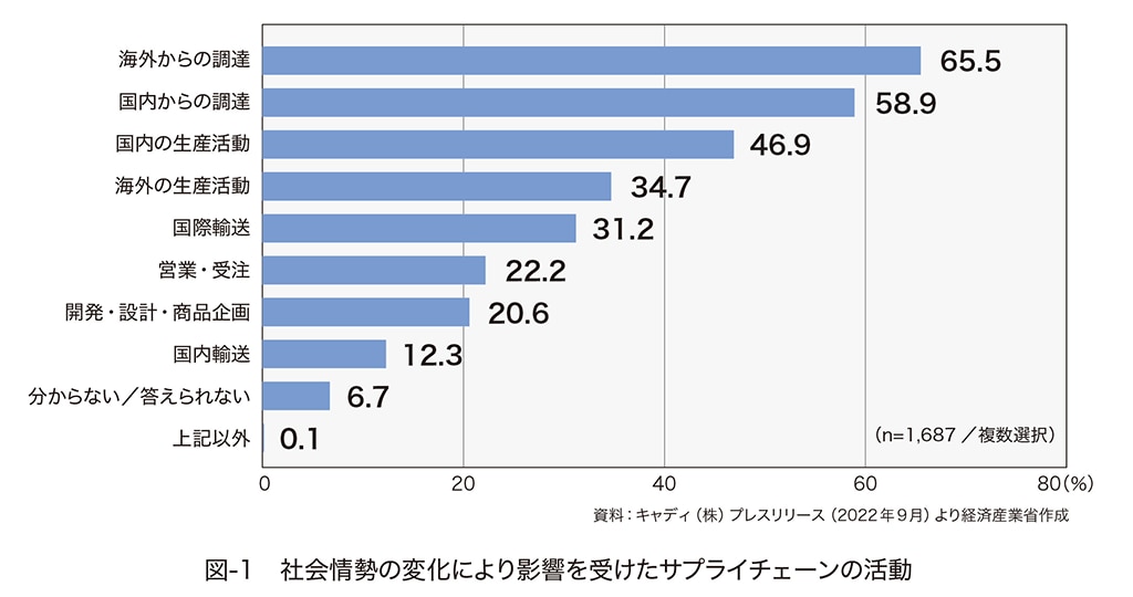 これらは国内の製造業にも大きな影響を与えており(図-1)、原材料やエネルギー価格の高騰、物流の混乱といったグローバルサプライチェーンの寸断リスクも高まっています。