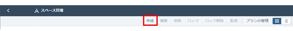 左側のメニューにある「スペース管理」をクリックし、スペース管理の画面に遷移します。遷移後、右上にある「作成」ボタンをクリックします。