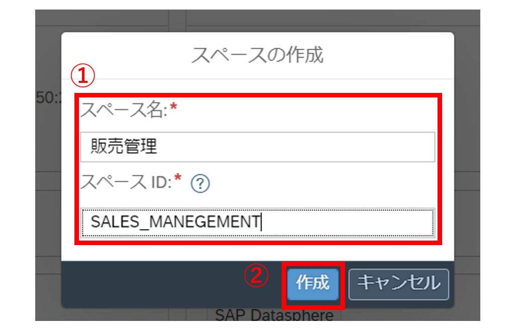 今回は、Datasphere上に「販売管理」と「在庫管理」という2つのスペースを作成します。