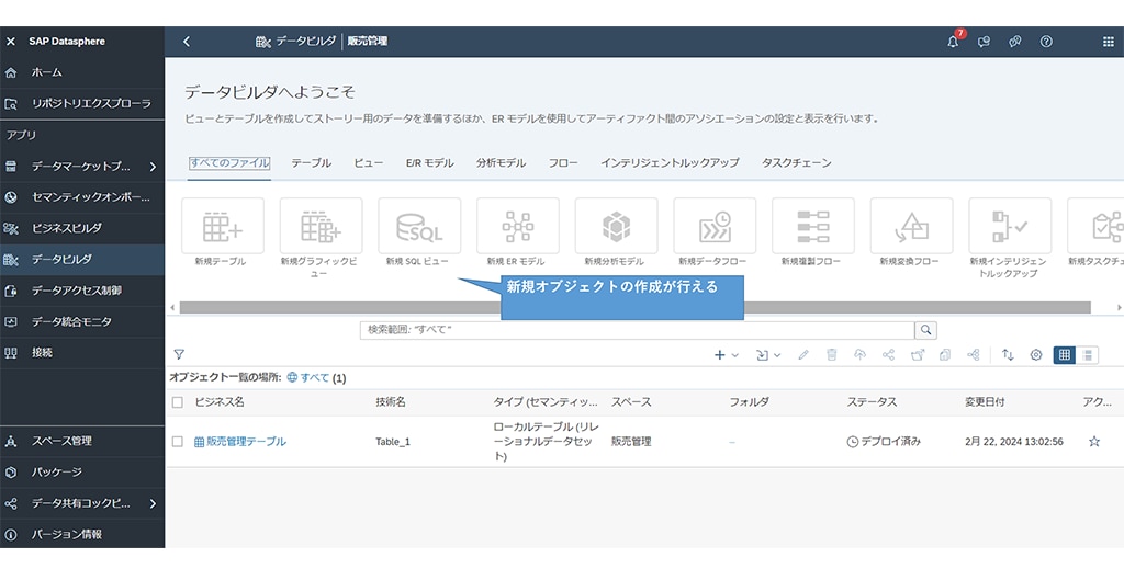 また「販売管理」のスペース内であれば、「データビルダ」の画面での新規オブジェクトの作成や既存オブジェクトの編集作業などを行うことができます。