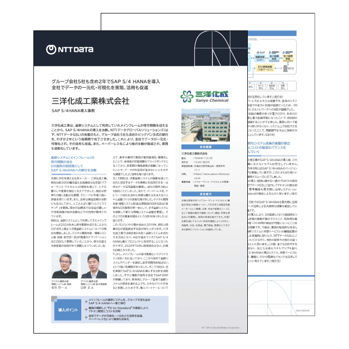 三洋化成工業株式会社は、基幹システムとして利用していたメインフレームが保守期限を迎えることから、SAP S/4HANAの導入を決断しました。