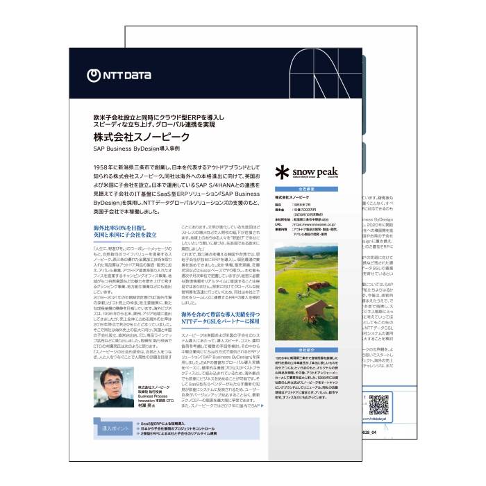 1958年に新潟県三条市で創業し、日本を代表するアウトドアブランドとして知られる株式会社スノーピークは、海外への本格進出に向けて、欧米子会社設立と同時にクラウド型ERPを導入しました。