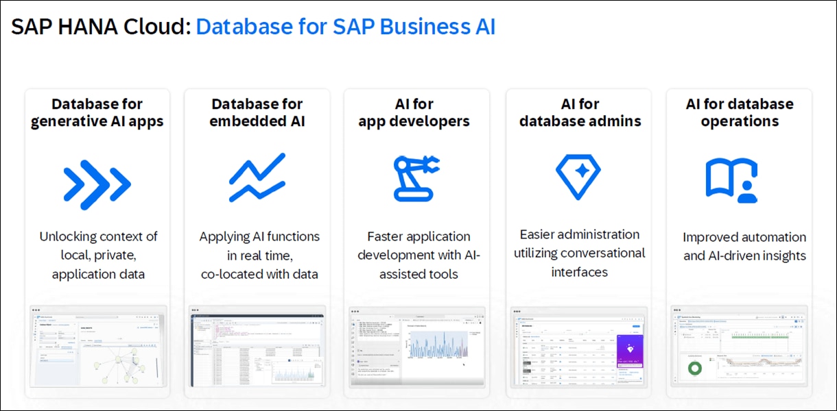 インメモリ技術による高速処理を特長とし、データの統合や高度な分析に加え、AIや機械学習の基盤としても活用できます。