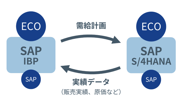 SAP® IBPは、SAP S/4HANA®(デジタルコア)からタイムリーな実績情報(販売実績、標準原価、販売単価など)を連携し、数量計画と財務計画をシームレスに統合します。